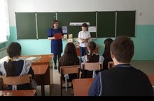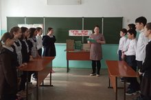 В рамках акции "У войны не женское лицо" учащиеся 7 класса приняли участие в торжественной церемонии вручения медали ветерану тыла и педагогического труда Файзуллиной Насиме.