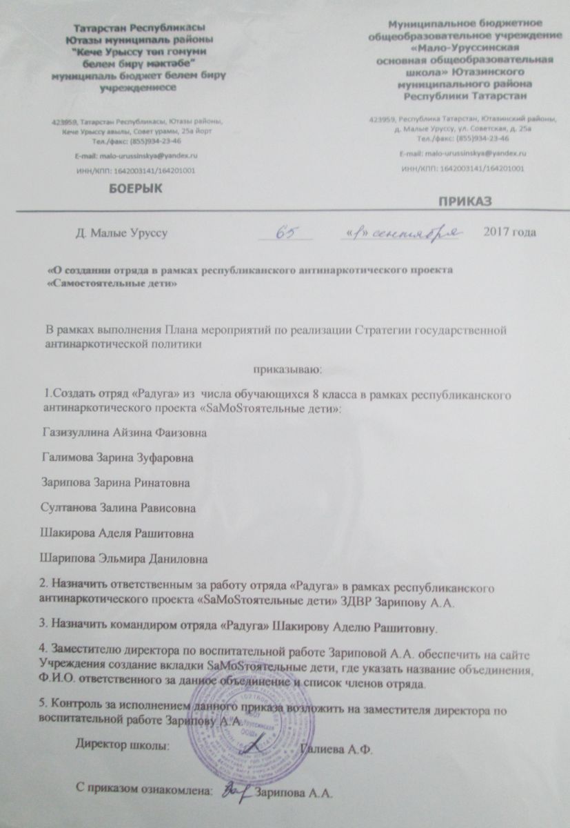 Муниципальное бюджетное общеобразовательное учреждение «Мало-Уруссинская основная общеобразовательная школа» Ютазинского муниципального района Республики Татарстан /Татарстан Республикасы Ютазы муниципаль районы муниципаль бюджет гомуми белем бирү учреждениесе "Кече Урыссу төп гомуми белем бирү мәктэбе"