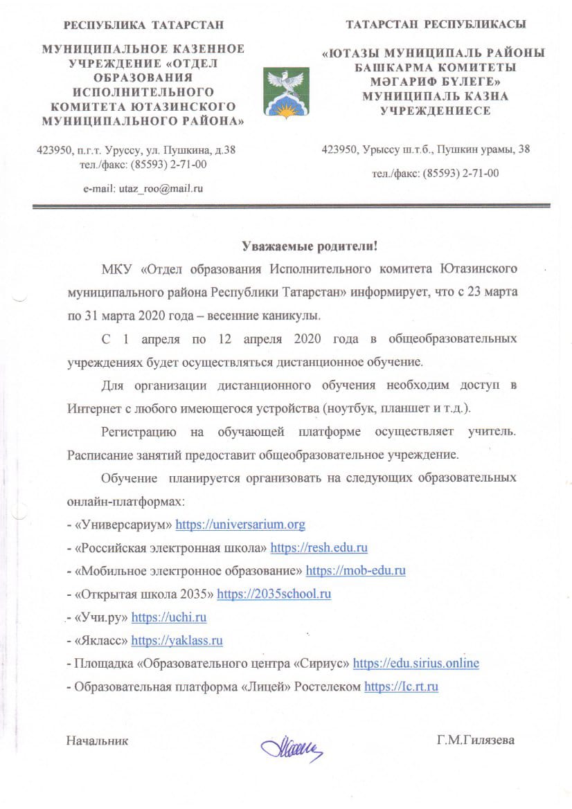 Приказ МКУ ОО ИК ЮМР РТ о дистанциооном обучении дополнительного образования. рdf