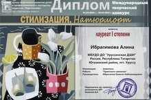 Яхина Диана заняла звание Лауреата 3 степени в Международном творческом конкурсе «Стилизация.Натюрморт»