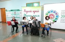 В фойе Дома Культуры встречали гостей коллективы Уруссинской детской школы искусств - народный ансамбль народных инструментов "Экспромт" (рук. Кубашева Зульфира Сагитовна), ансамбль баянистов "Тургайлар" под руководством Ихсановой Риммы Галиаскаровны.