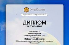 Поздравляем учащегося Уруссинской ДШИ Галеева Артёма с победой в IX Международном конкурсе для детей и молодёжи "Мы можем!", ставшего Победителем 2 место (преп.Мударисова С.Н.)