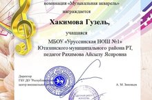 Ученица 3 А класса #УруссинскаяНОШ1 - Хакимова Гузель стала Дипломантом 2 степени - XII Республиканского конкурса творческих работ «Музыкальная палитра», посвященного творчеству Э. Грига «Певец родной природы» , Номинация «Музыкальная акварель».