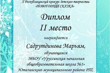 Садрутдинова Марьям, ученица 3 А класса заняла 2 место в X Республиканском конкурсе детского творчества "Новогодняя сказка"