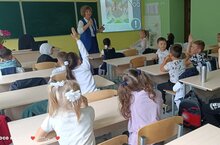 Сегодня в рамках месячника безопасности начальник отделения профилактики ГБУ "БДД" Р.И.Игнатьева провела беседу с первоклассниками о безопасности на проезжей части дороги, о правилах дорожного движения пешеходов.