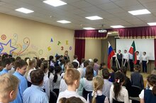 Еженедельная линейка с поднятием флага Российской Федерации и флага Республики Татарстан. На линейке прошла беседа о безопасности дорожного движения, о ношении СВЭ в тёмное время суток, о правилах езды на велосипеде и самокате.