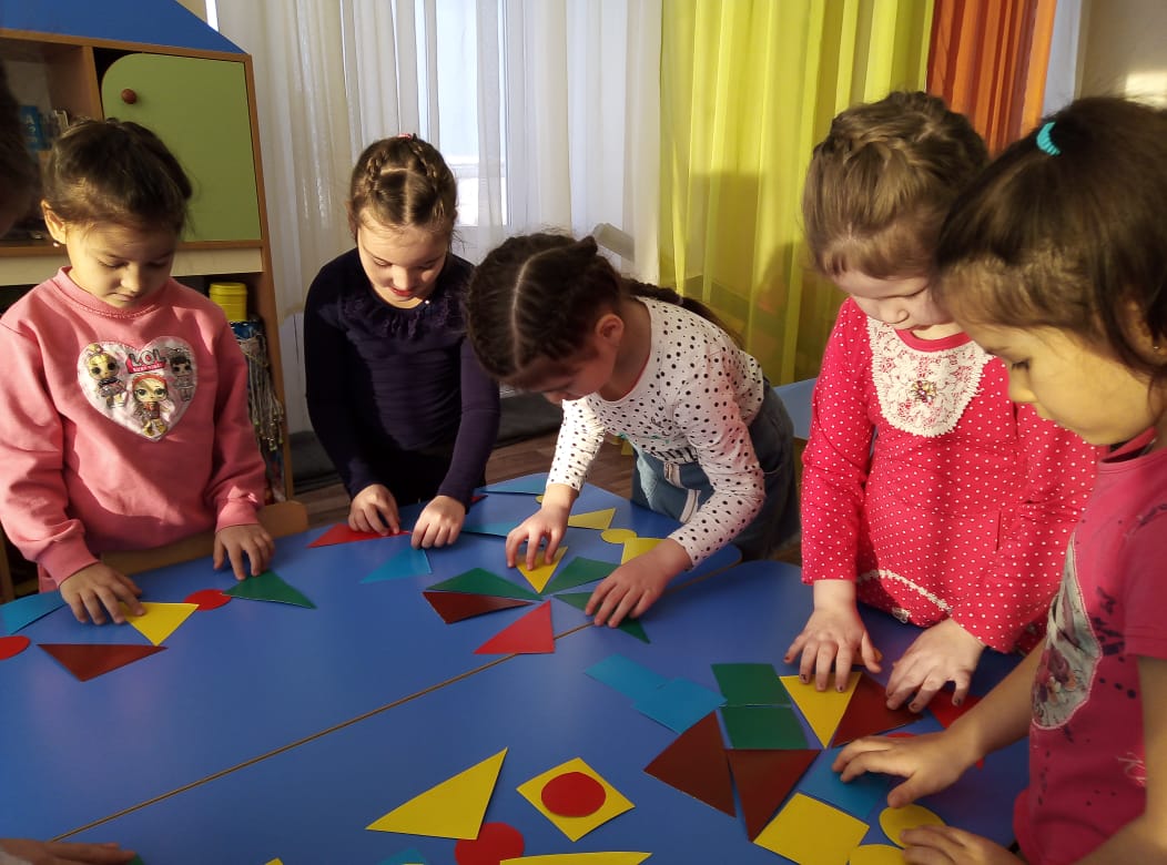 Дети подготовительной группы занимаются плоскостным моделированием из геометрических фигур.Детям очень нравится учиться играя. Ведь математика -это интересно, особенно когда она проходит занимательно, весело и в игре.