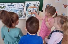 В средней группе прошло познавательное занятие на тему "Снегирь-птица зимы". Дети познакомились с многообразием зимующих птиц, в частности со снегирем, отметили характерные особенности птицы- размер, ораску, разный цвет оперения на различных частках тела. В течении дня дети рисовали снегирей, лепили из соленого теста.
