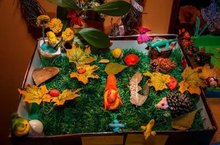 В своих работах ребята использовали разные природные материалы – шишки, листья, цветы, веточки, мох, овощи, фрукты и т.д. На выставке были представлены лесные композиции, осенние сказки, игровые ситуации, панно, игрушки и многое другое.
