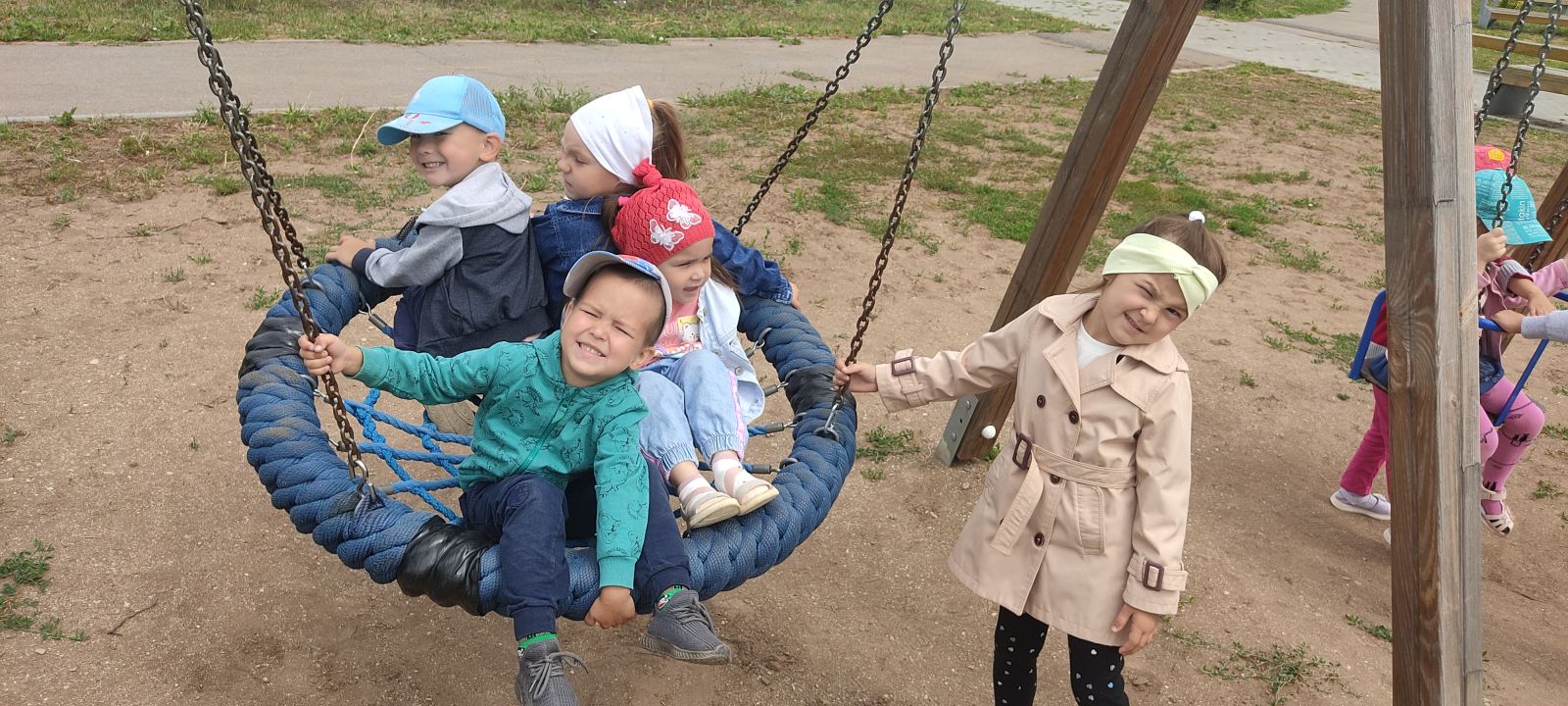 Мы уселись на качели,