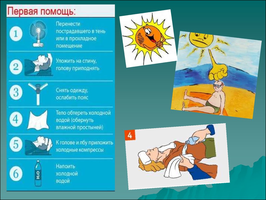 Если же по каким- либо причинам произойдет перегревание, то примите к сведению и запомните основы первой доврачебной помощи.