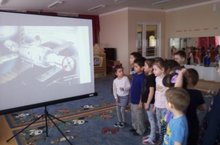 Детям был продемонстрирован видеоролик о том, как впервые была запущена в космос ракета со станции Байконур. Было рассказано о первом в мире космонавте, покорившем космическое пространство.