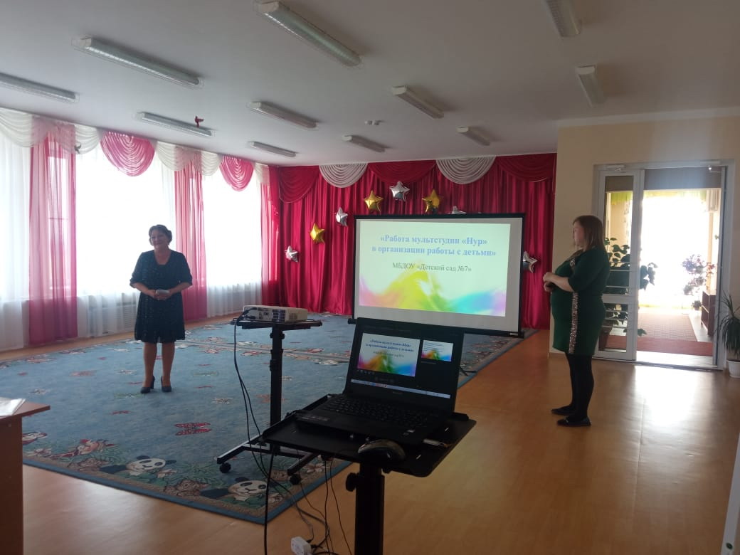 16 мая 2023 года в нашем саду прошёл районный семинар воспитателей ДОУ на тему «Работа мультстудии в организации работы с детьми». Воспитатели района прошли мастер-класс в мультстудии «Нур», посмотрели инсценировку сказки «Теремок» на татарском языке, музыкальную игру «Весёлые буквы», побывали на детском празднике «Әминәнең туган көне». Педагоги детского сада показали мультфильмы, созданные педагогами мультстудии «Нур» совместно с детьми и родителями.