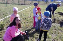 Маленькие воспитанники детского сада №7 основательно готовились к первой в их жизни посадке деревьев: принесли с собой ведра и лопатки, а также выучили стихи. Дети пообещали, что будут поливать и ухаживать за деревьями, и тогда весной яблони зацветут белым и розовым цветом. -