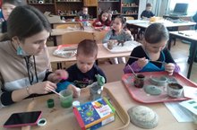 Весна и главное в ней - красота. Сегодня на занятии объединения "Волшебная лепка" дети учились создавать красоту своими руками. В качестве декора на кувшинчиках, бокалах и тарелках была выбрана гроздь виноградной лозы. Что очень просто в исполнении и эффектно выглядит при созерцании. Педагог Губайдуллина Г.М. 06.04.2022