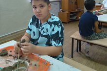Ответственный момент, когда обожжённое изделие покрывается глазурью для повторного обжига, после чего изделие заиграет новыми красками. Объединение "Волшебная лепка", педагог Гульнара Масхутовна, тел. 8927-49-00-213 15.10.2021