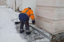 На территории ЦДТ идет очистка отмостки от снега. 12.02.2021