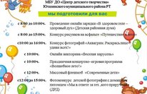 1 июня – День защиты детей и первый день летних каникул. К сожалению, в условиях соблюдения мер по профилактике распространения коронавирусной инфекции, не представляется возможным организовать и провести традиционные массовые мероприятия. Но это не повод унывать и скучать! Мы подготовили для Вас много интересных онлайн мероприятий. Не выходя из дома, можно посмотреть концерты обучающихся ЦДТ, поучаствовать в конкурсах, акциях, флеш-мобах, мастер-классах. 01.06.2020