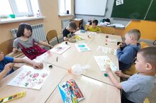 Объединение "Мозаика" занятие на базе ЦДТ. Рисуем пейзаж при помощи поролона. 04.05.2023