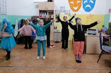 На занятии в театральной группе, в студии "Юные таланты" обучающиеся готовятся к спектаклю "Новогоднее Приключение Буратино". Преподаватель Валиева Г. И. 15.01.2023