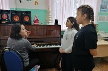 На занятие по вокалу, в студию "Юные таланты" приглашаются по двое и трое детей обучающихся для того, чтобы подготовить юных вокалистов к исполнению дуэтом или трио. Обучающиеся должны слышать рядом стоящего товарища и пытаться построить терцию. Педагог Заслуженный работник культуры РТ - Валиева Г. И. 18.11.2022
