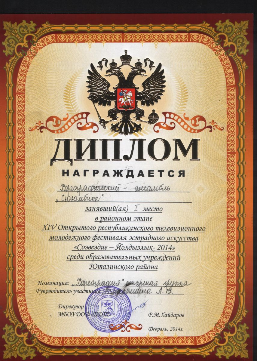 Республиканский конкурс_ Созвездие - Йолдызлык_ Диплом_ Сююмбике