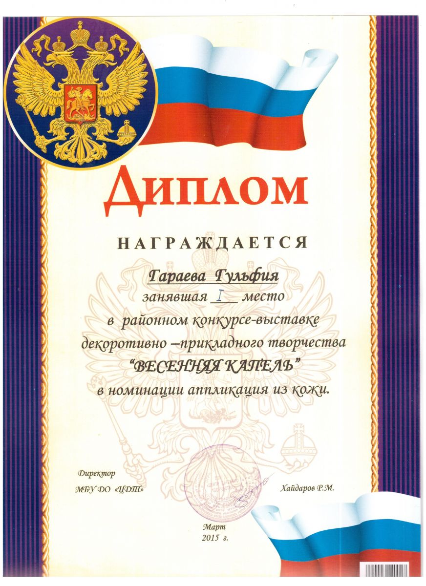 /Диплом 1 степени в районном конкурсе - выставке "Весеняя капель". Гараева Гульфия.jpeg