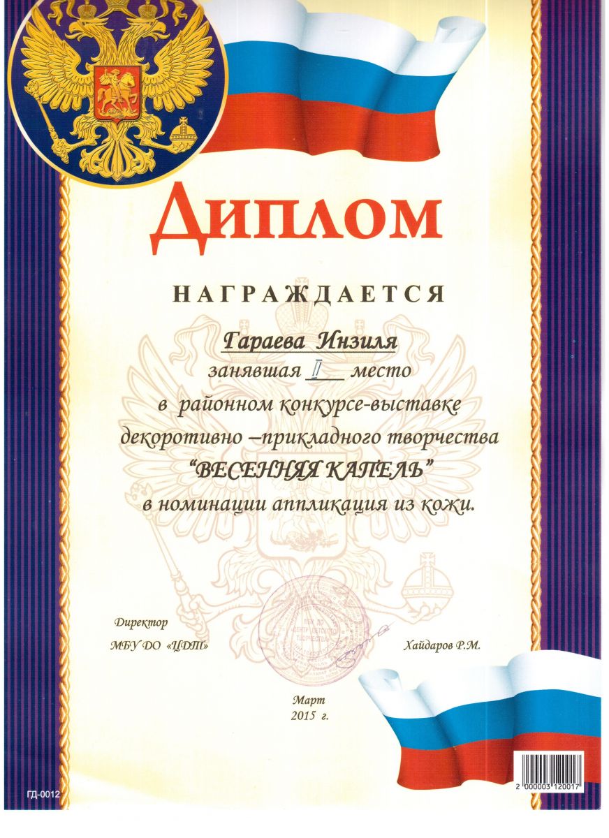 /Диплом 2 степени в районном конкурсе - выставке "Весеняя капель". Гараева Инзиля.jpeg
