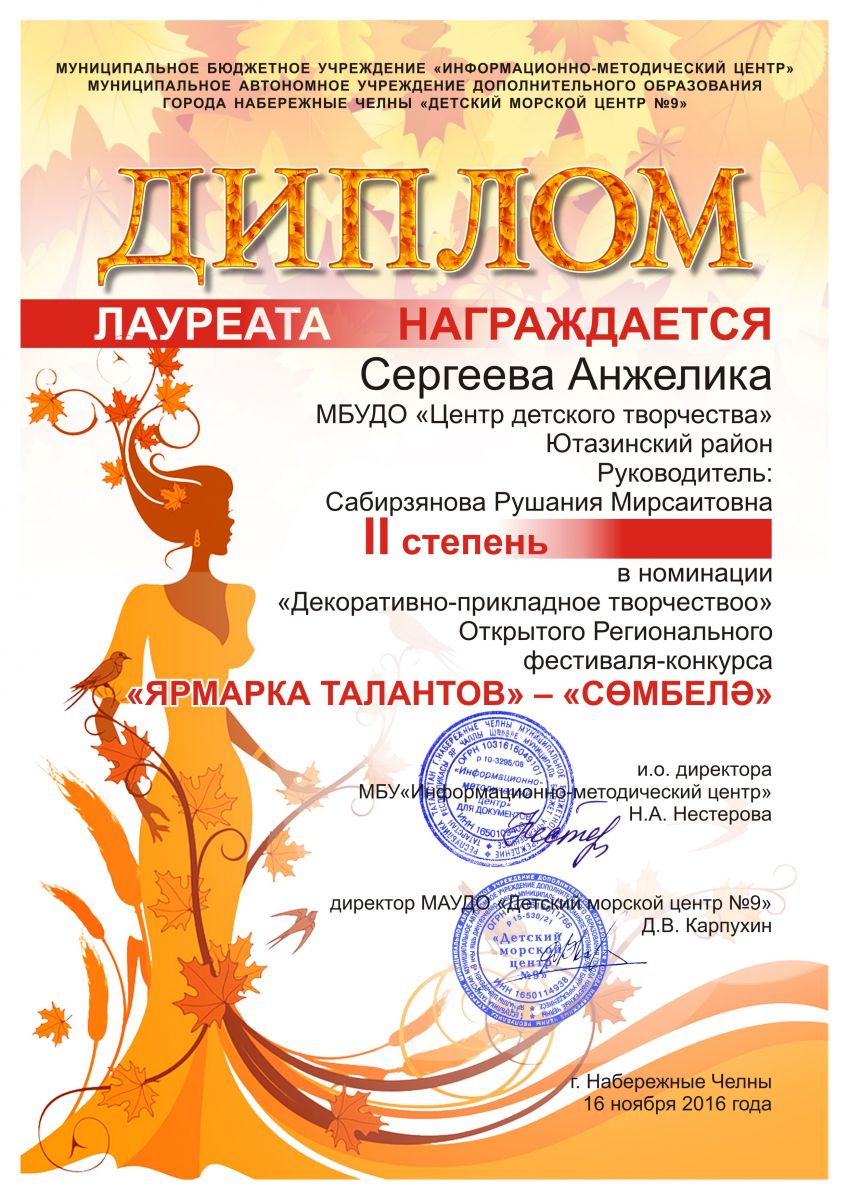 /Диплом 2 степени в районном конкурсе - выставке "Весенняя капель". Сергеева Анжелика.jpg