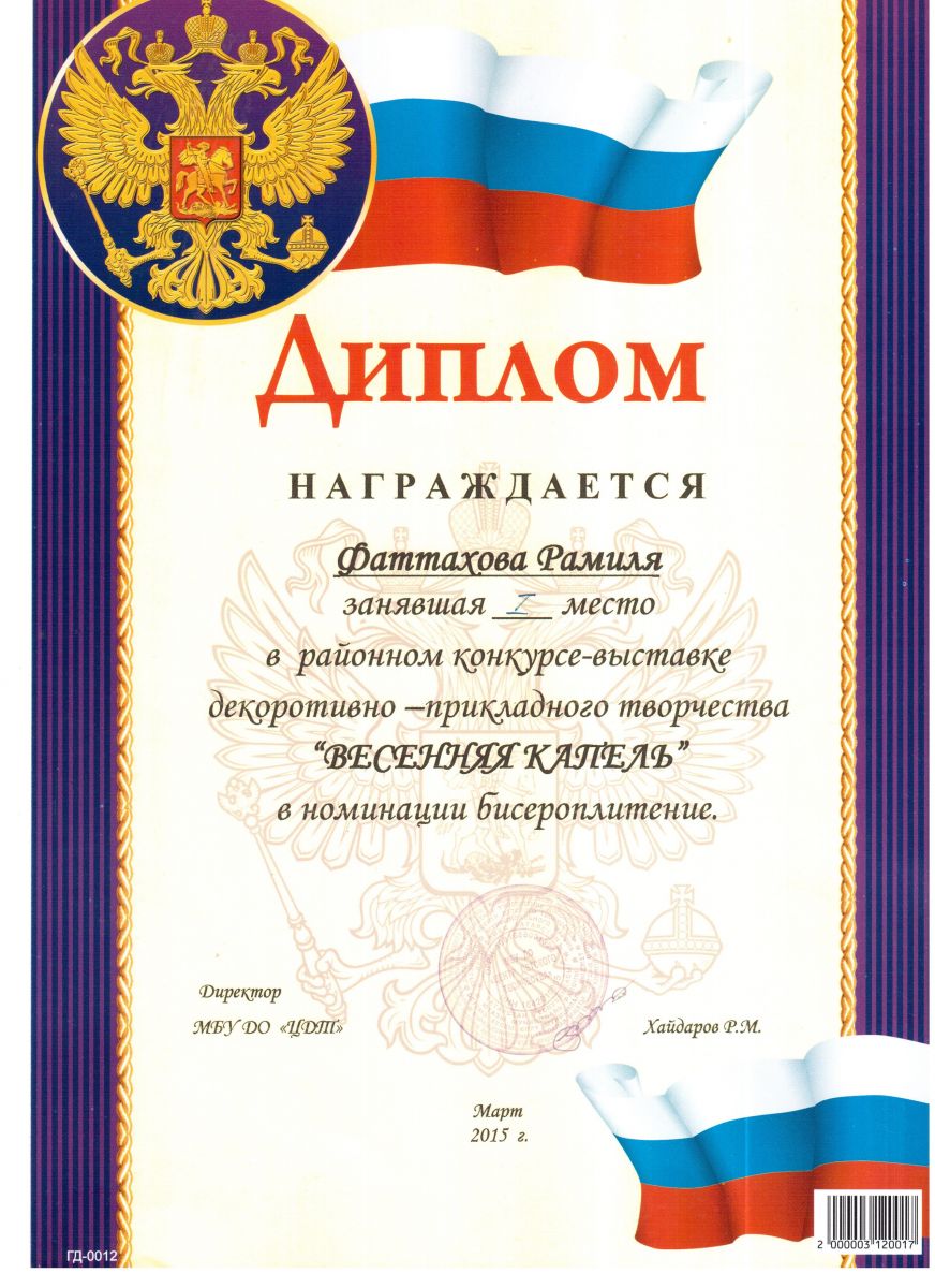 /Диплом 1 степени в районном конкурсе - выставке "Весенняя капель". Фаттахова Рамиля.jpeg