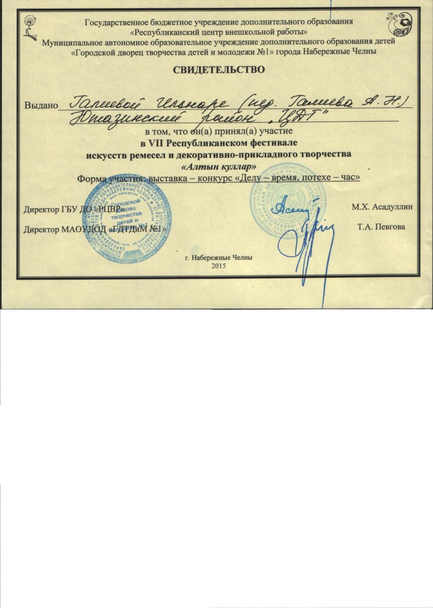 /Свидетельство участника в Республиканском фестивале искусств "Алтын куллар". (Галиева Ильнара).JPG