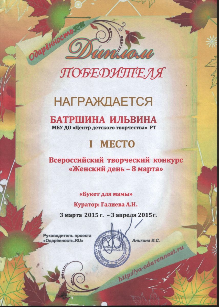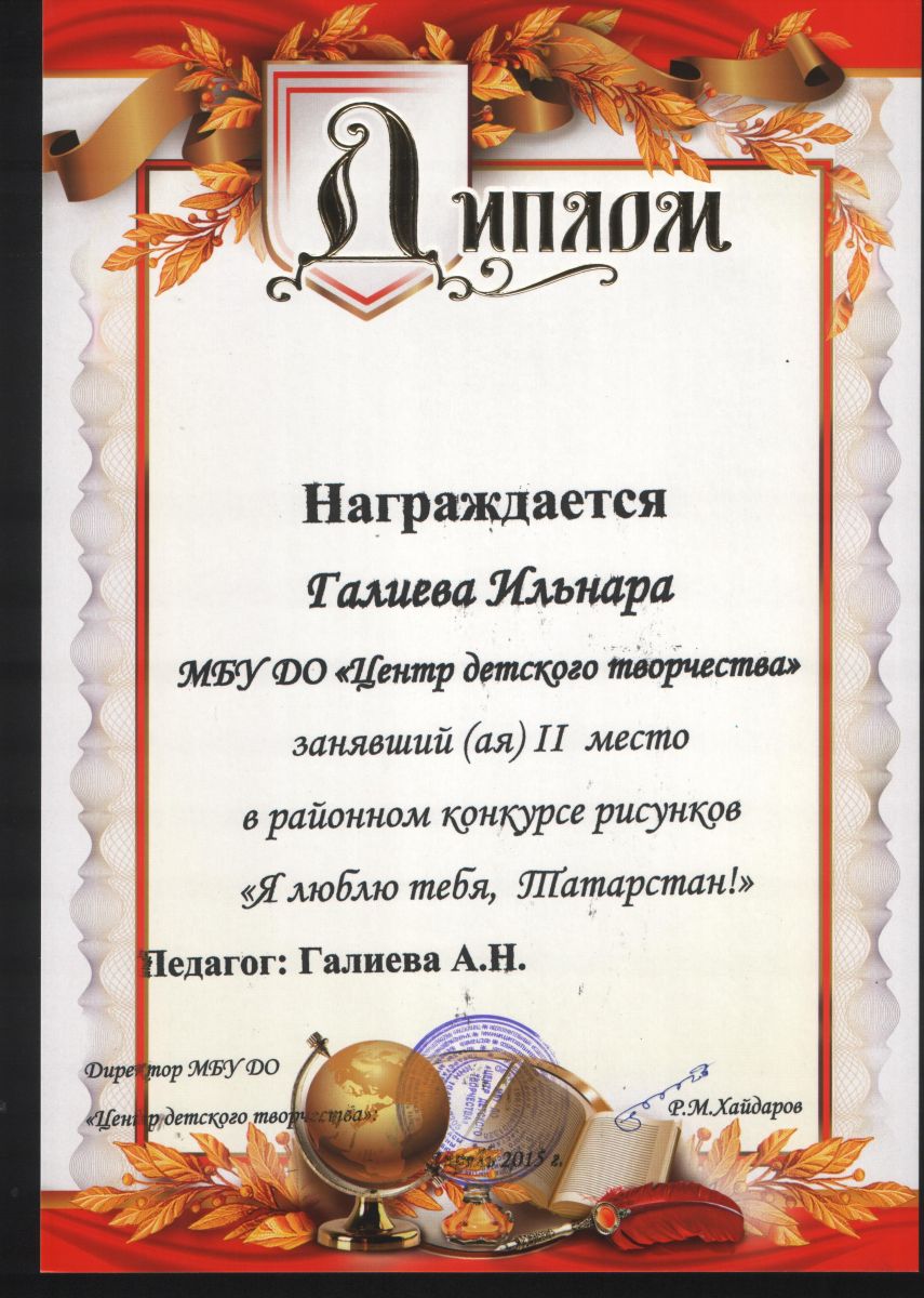 /Диплом 2 степени в районном конкурсе рисунков "Я люблю тебя, Татарстан!". (Галиева Ильнара) .jpg