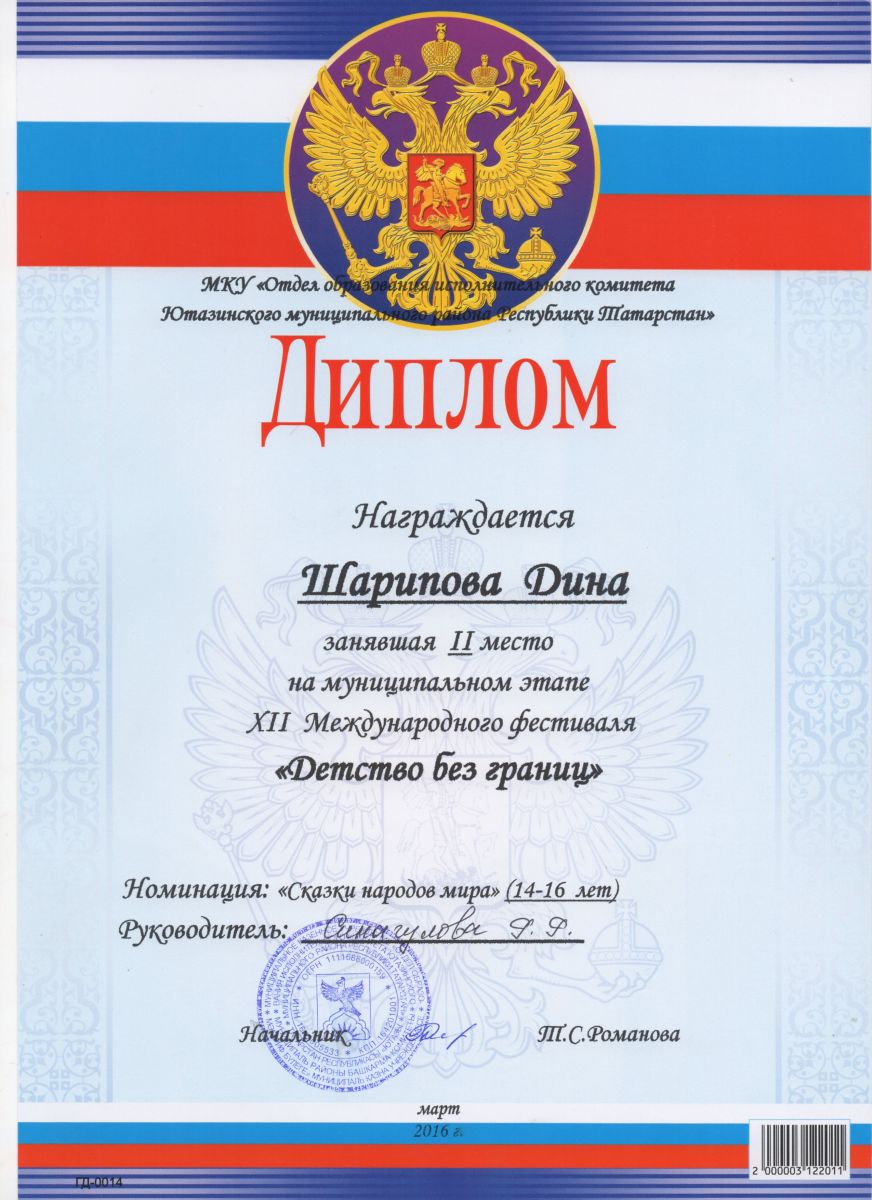 /Диплом 2 степени на муниципальном этапе Международного фестиваля "Детство без границ" (Шарипова Дина).jpg