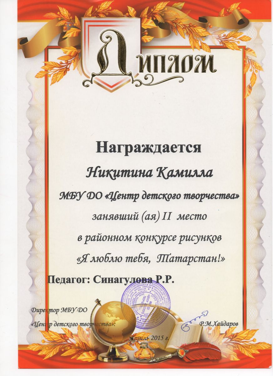 /Диплом 2 степени в районном конкурсе рисунков "Я люблю тебя, Татарстан!" (Никитина Камилла).jpg