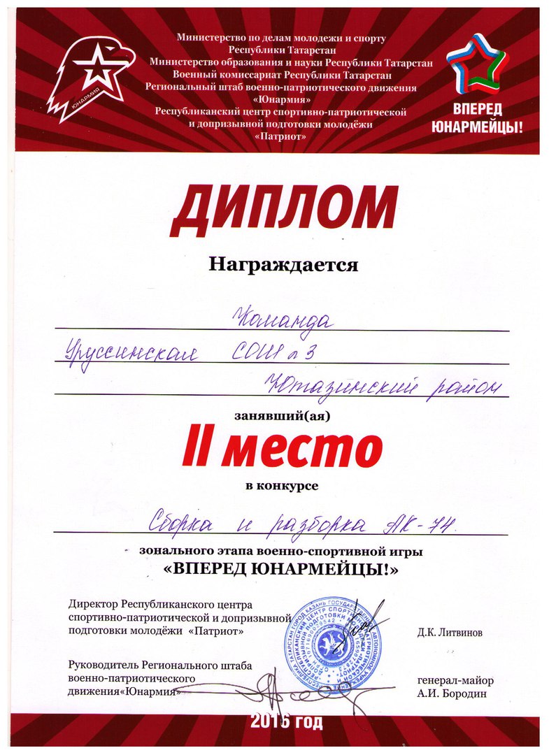 Диплом II степени в зональном этапе военно - спортивной игры ""Вперед Юнармейцы. Команда.jpg