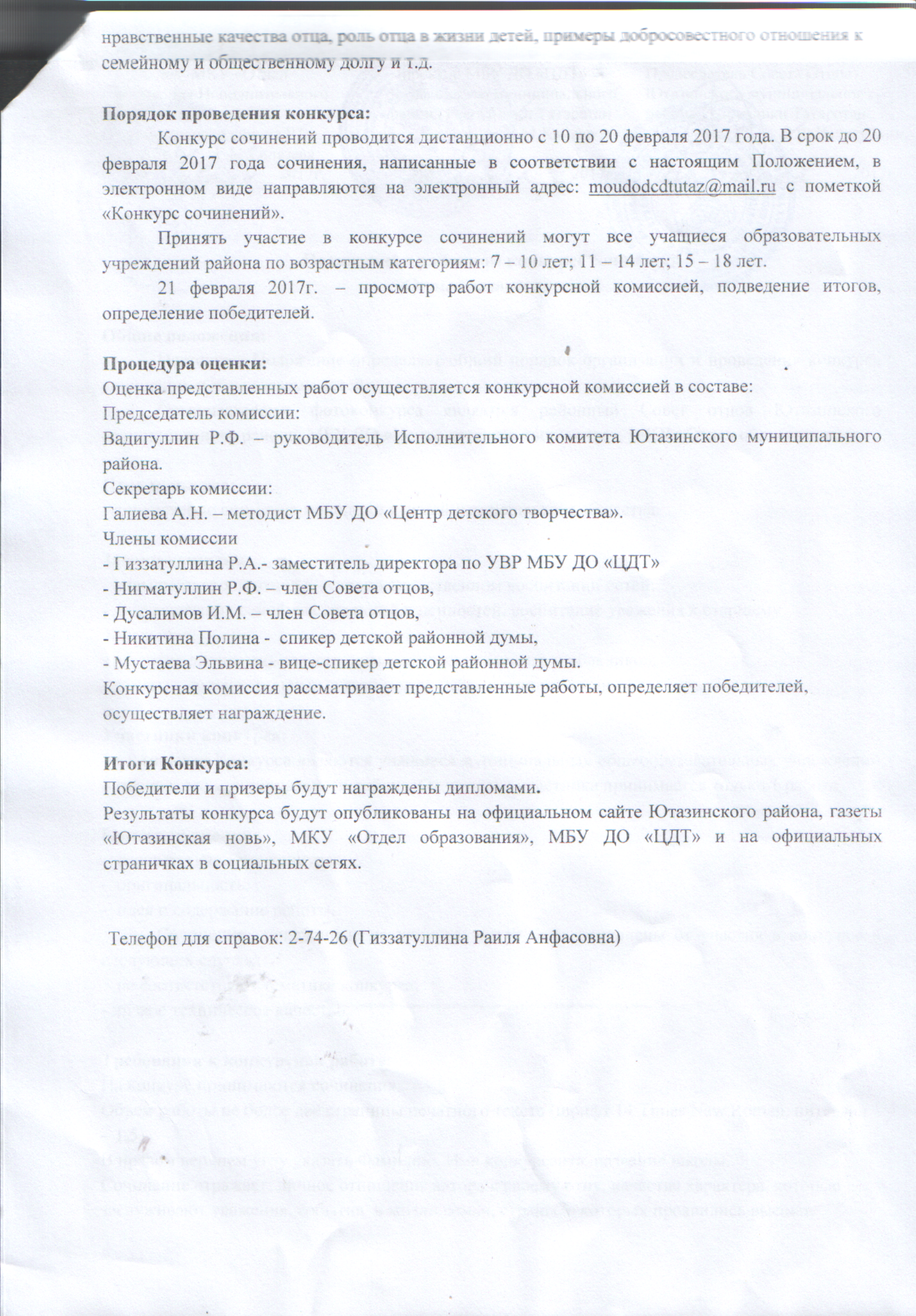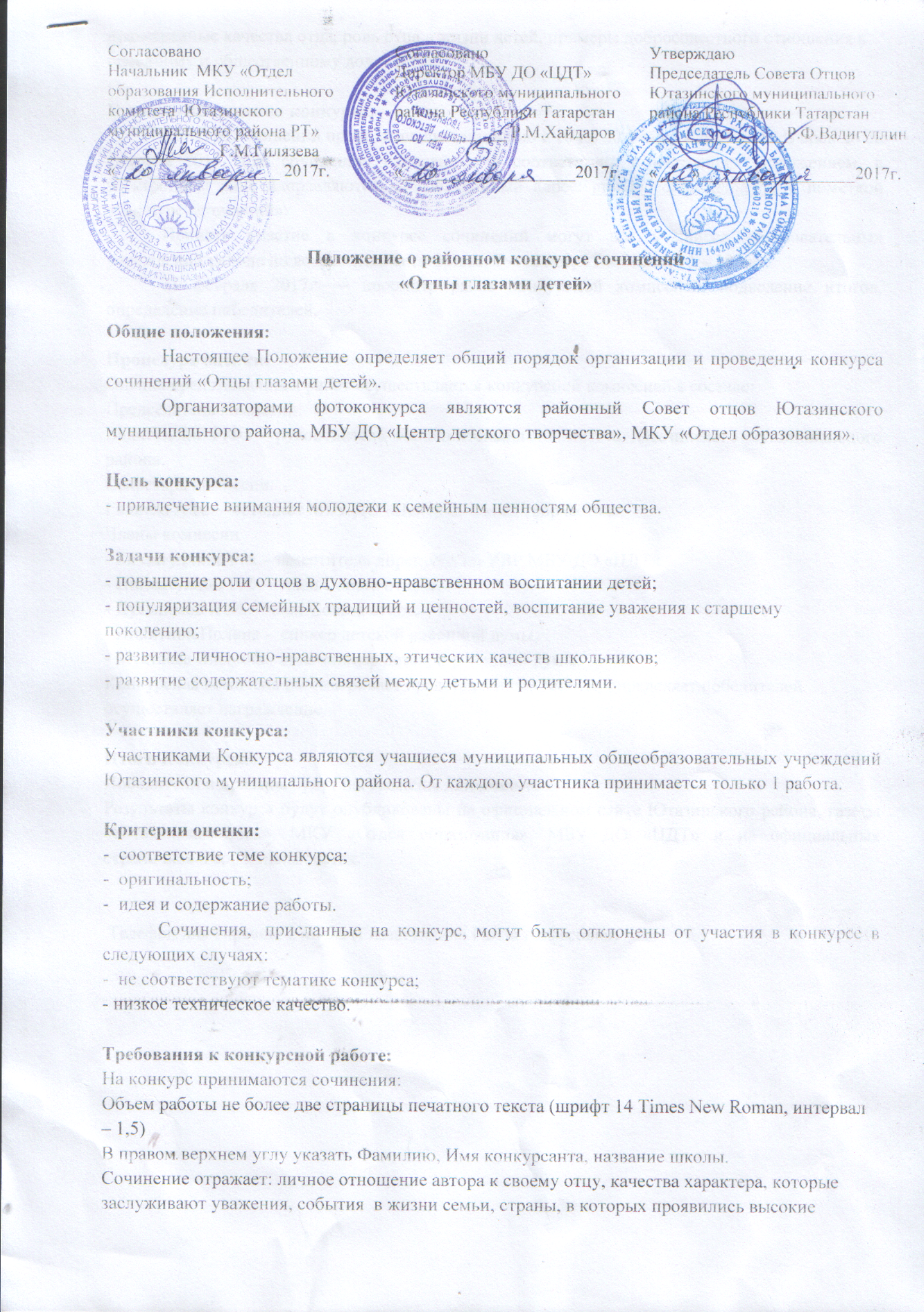 Положение о районном конкурсе сочинений "Отцы глазами детей"