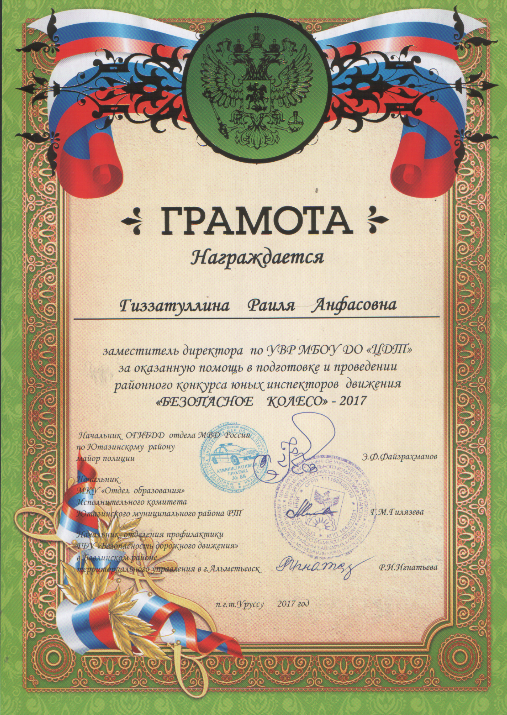 /Грамота за оказанную помощь в подготовке и проведении районного конкурса "Безопасное колесо - 2017".bmp