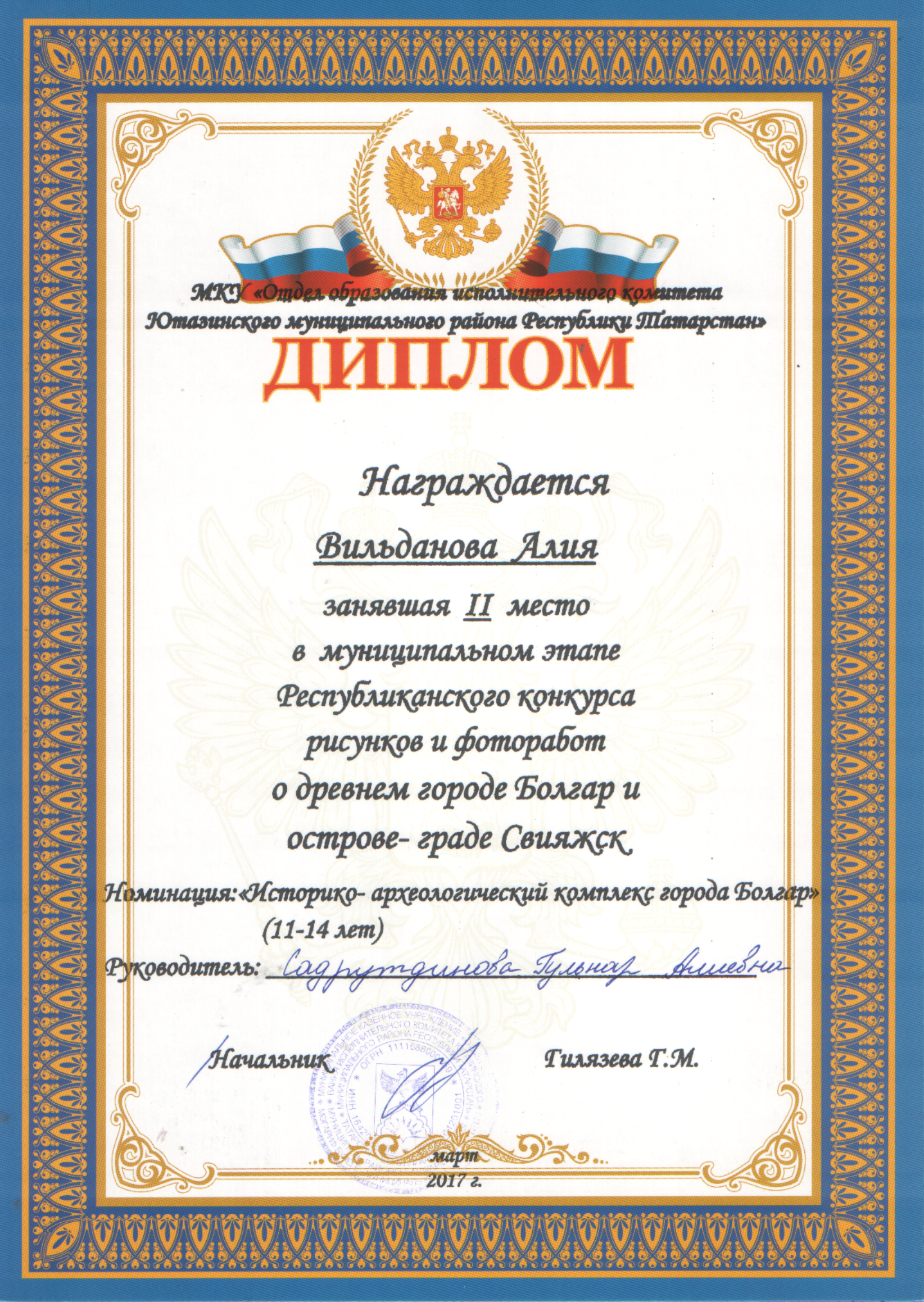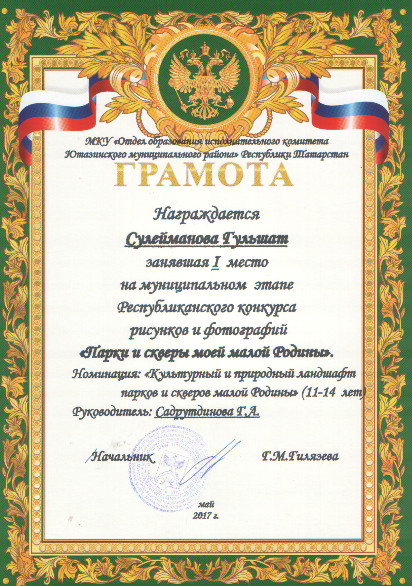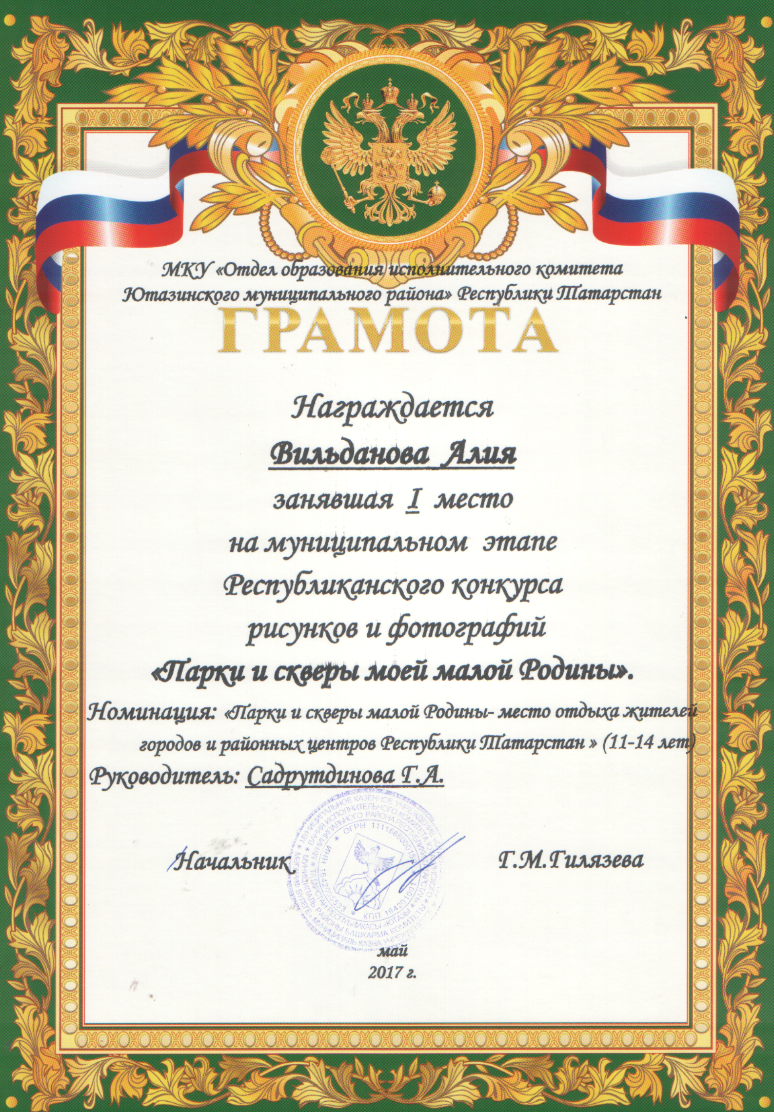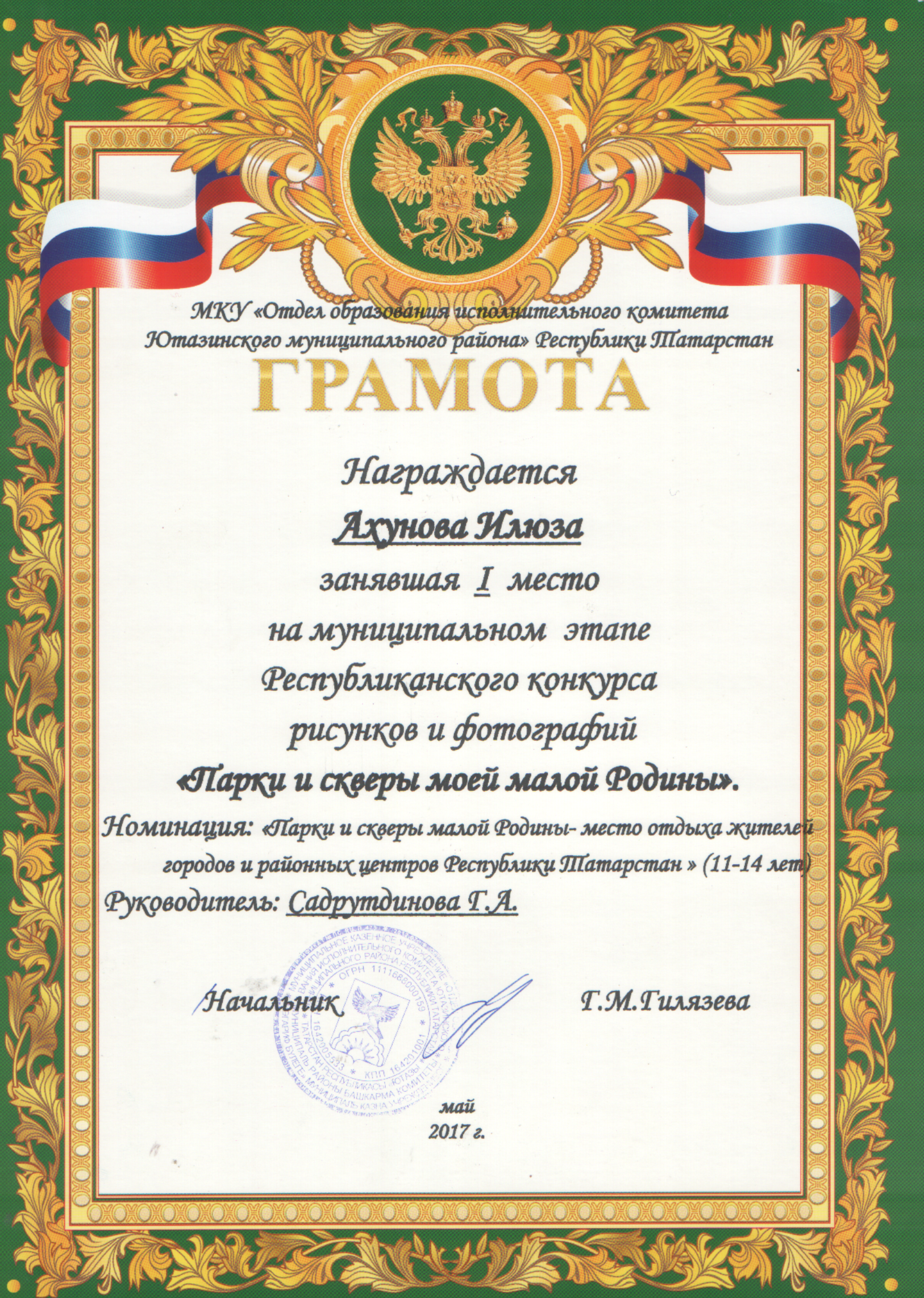 /Диплом в районном конкурсе произведений и сочинений "Мин ижат итэм". Газиева Гульшат.pdf