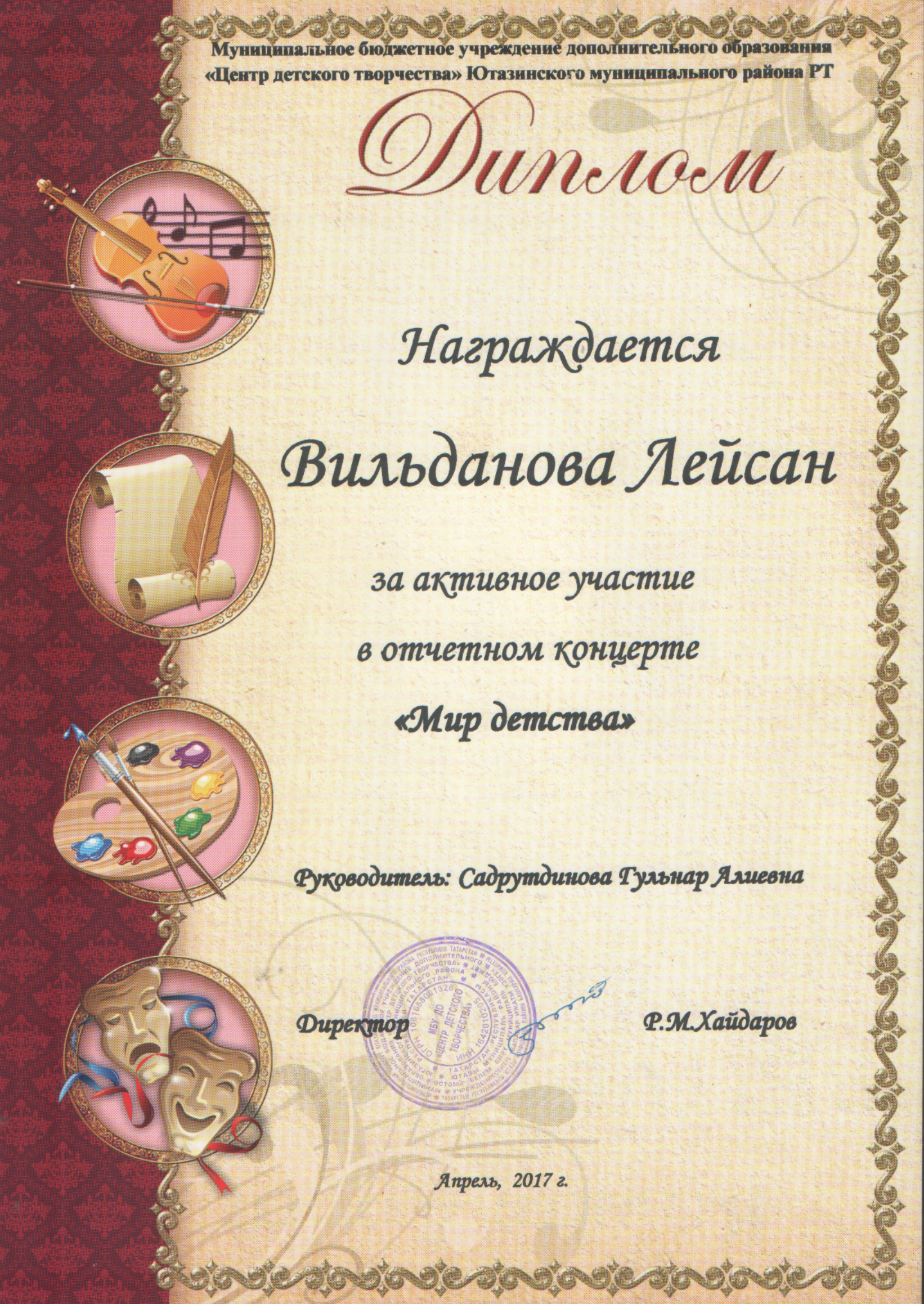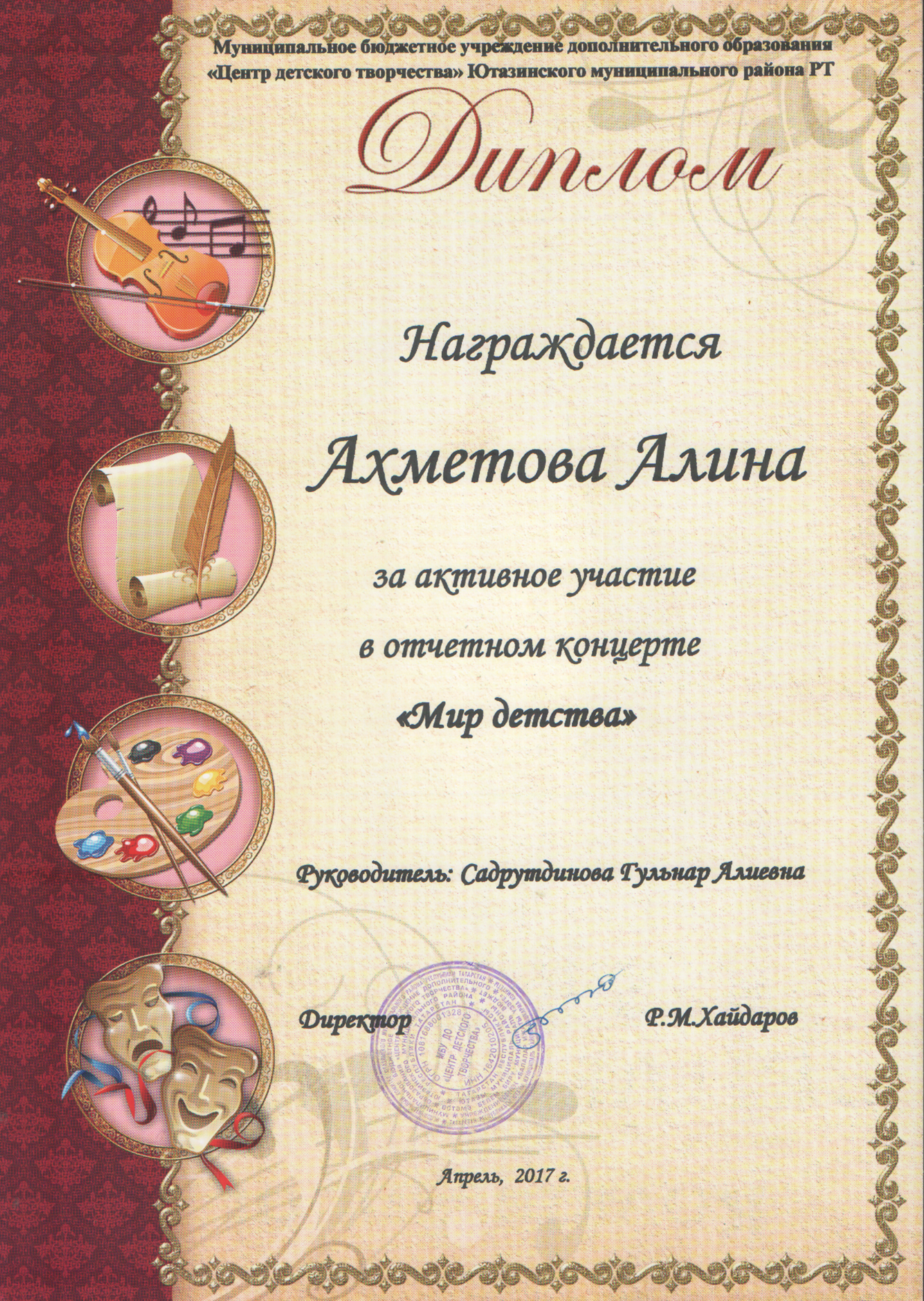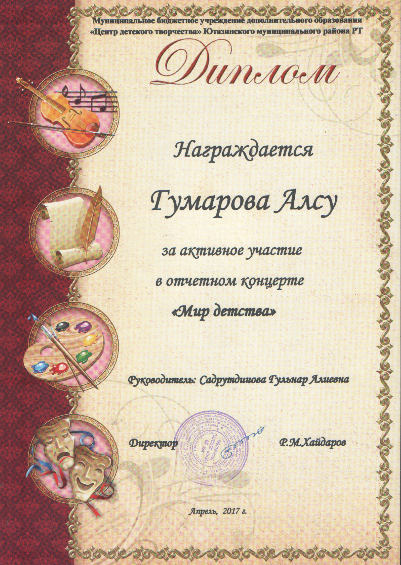 /Диплом за активное участие в отчетном концерте "Мир детства". Гумарова Алсу. bmp