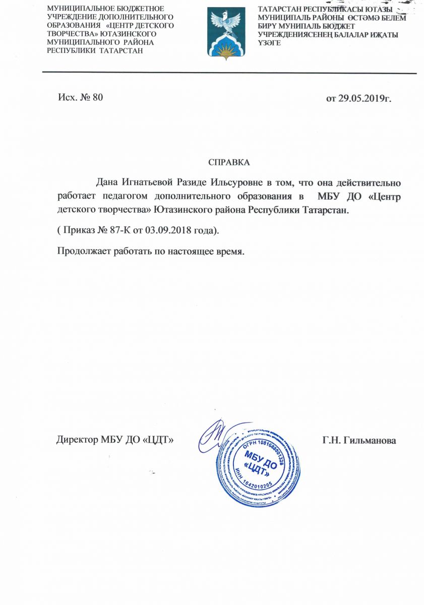 Муниципальное бюджетное учреждение дополнительного образования «Центр детского творчества» Ютазинского муниципального района Республики Татарстан/Татарстан Республикасы Ютазы муниципаль районы «Балалар иҗаты үзәге» өстәмә белем муниципаль бюджет учреждениесе