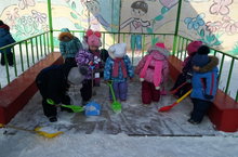 Трудовая деятельность во второй младшей группе. Расчистка беседки от снега 22.02.2018