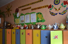 В связи с этим воспитатель старшей группы Петрова Н.Ю. решила организовать в раздевалке группы выставку на тему: «От самовара к чайнику». При организации выставки воспитателю помогли отзывчивые родители и дети.