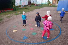 Цель: упражнять в пряжках на двух ногах с продвижением вперед.