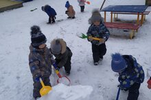 Трудовая деятельность во время прогулки (2 младшая группа). Сооружение снежной горки 29.11.2021