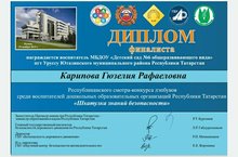 Диплом финалиста Республиканского смотра-конкурса лэпбуков среди воспитателей ДОО РТ "Шкатулка знаний безопасности" 28.10.2019