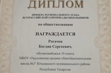 Рогачев Богдан Сергеевич, ученик 10 класса МБОУ «Уруссинская СОШ № 3» стал призером всероссийской олимпиады школьников по обществознанию. Молодец!