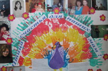 Без үзебезнең әниләребезне котлап стенд ясадык.Анда әниләрнең фотоларын урнаштырдык һәм матур -матур теләкләр теләдек.