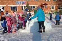 Безнең балалар бакчасында кар корылмалары төзү традициягә керде. Бу педагоглар һәм ата-аналар хезмәттәшлеген гамәлгә ашыру мисалларының берсе, анда ата-аналар - пассив күзәтүчеләр түгел, ә процессның актив катнашучылары. Участокны, әниләрне рәсмиләштереп, бик рәхәтләнеп эшкә тотындылар, үзләренең сынлы сәләтләрен күрсәттеләр һәм нәтиҗәдән канәгать калдылар.