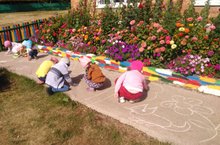 Бүген рәсем ясарга яратучыларның барысы да катнашты. Балалар чын тылсымчылар булдылар - үзләренең рәсемнәре белән соры асфальт мәйданчыкны әкият дөньясына әйләндерделәр. Балалар җәйнең барлык буяуларын рәхәтләнеп чагылдырырга тырыштылар. Моның өчен алар акбур кулландылар, һәм барысының да кәефе бик шатлыклы һәм кояшлы иде. Мел балаларга уйланылганын күрсәтергә ярдәм итте. Менә шулай итеп, безнең балалар бакчасында тагын бер җәйге көн узды. Һәр бала өчен эмоциональ иминлек шартлары булдырылды, анда барысы да кызыклы һәм эчтәлекле эш белән шөгыльләнде.