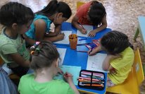 Бүген балалар янына кунакка Хоттабыч карт килде. Ул балаларга буш кул белән килмәде . Хоттабыч аларга төрле төскә буялган, савытларга салынган су алып килде. Башта ул балалар белән төсләрне кабатлады. Аннары булган төсләрне бутап яңа төсләр барлыкка китерделәр. Эксперимент куйдылар. Балалар бик канәгать калдылар!